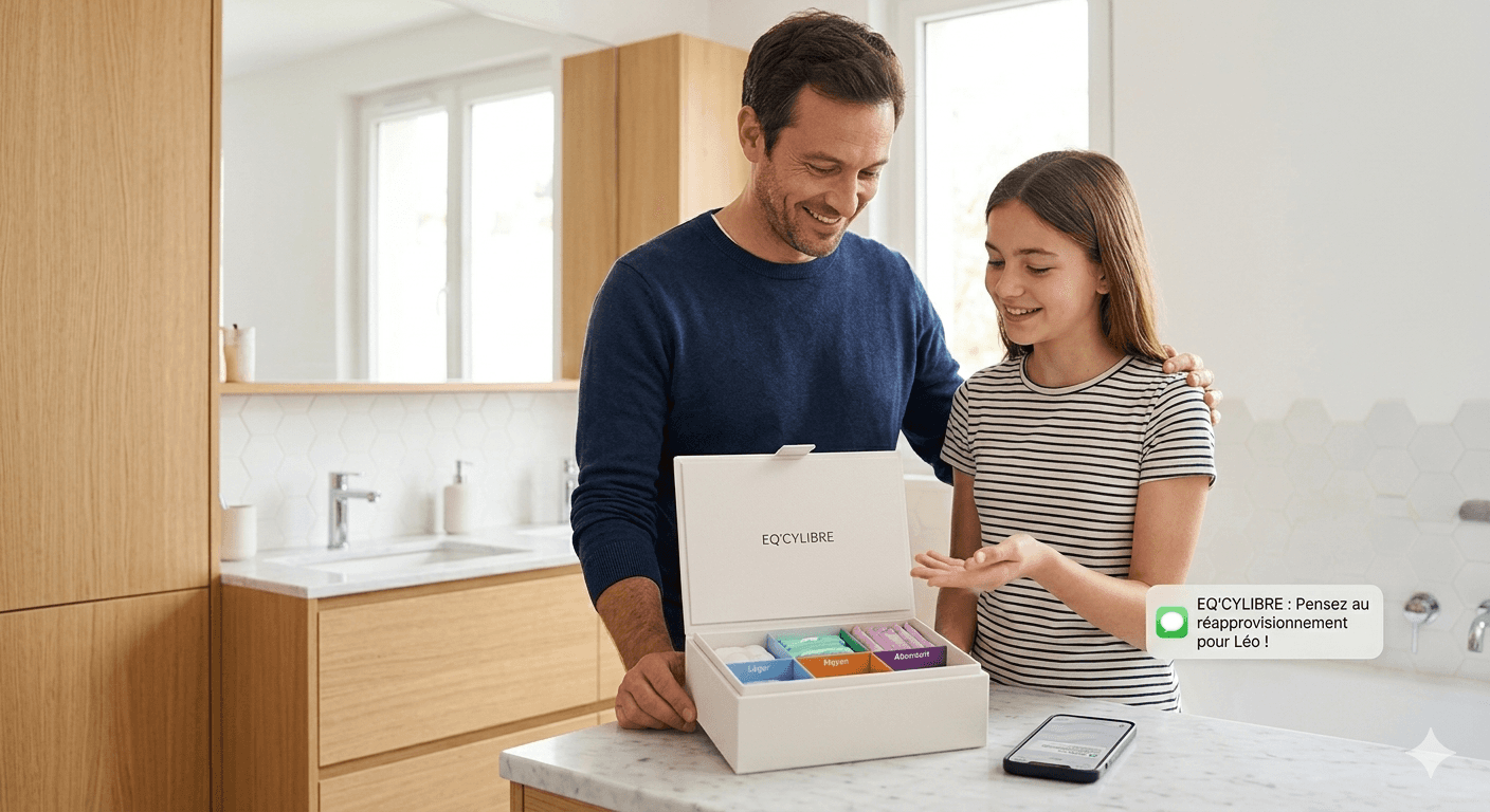 Découvrez la première boîte de protections périodiques pensée comme un tableau de bord. Une organisation intuitive pour vous, votre fille et tout le foyer.
